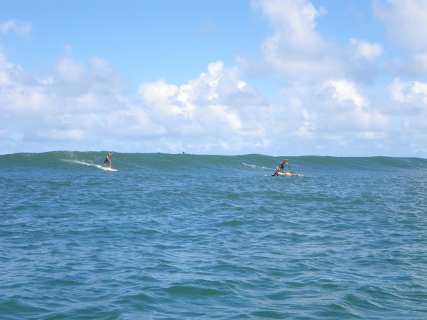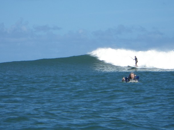 By our second day in the water, everyone was really nice and friendly. There is a vetting process in any surf break. The locals need to know that you know what you are doing, how the lineup works, are safe around other surfers with your SUP, and can kick out if necessary. Be nice, respect the locals, and give up more waves than you take.
