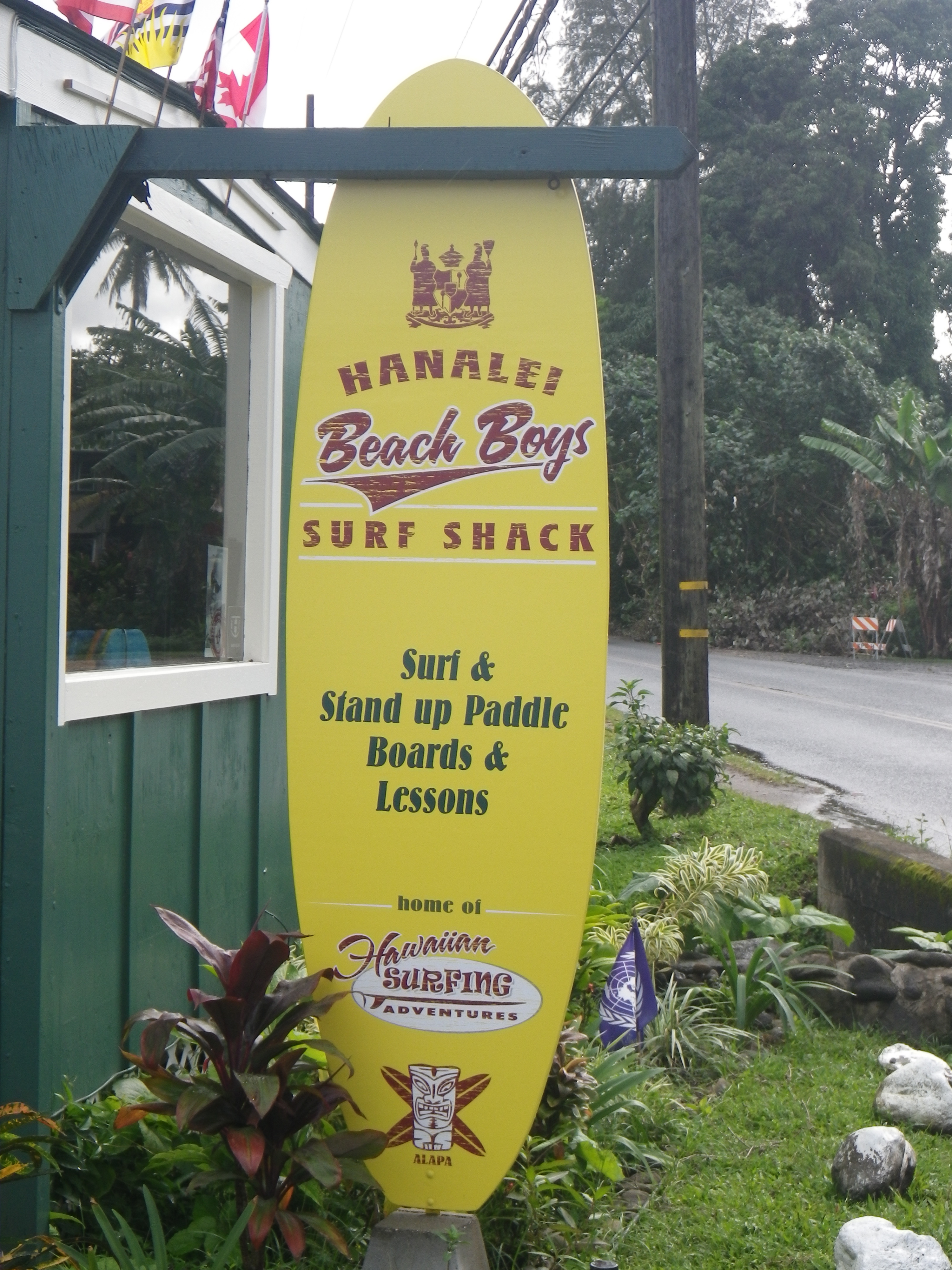 We ended up walking around Hanalei to all the rental shops looking for the best selection. We ended up renting from Hawaiian Surfing Adventures (aka Hanalei Beach Boys) in downtown Hanalei. They had the best selection, and let us trade boards as we wanted. Really nice people as well.