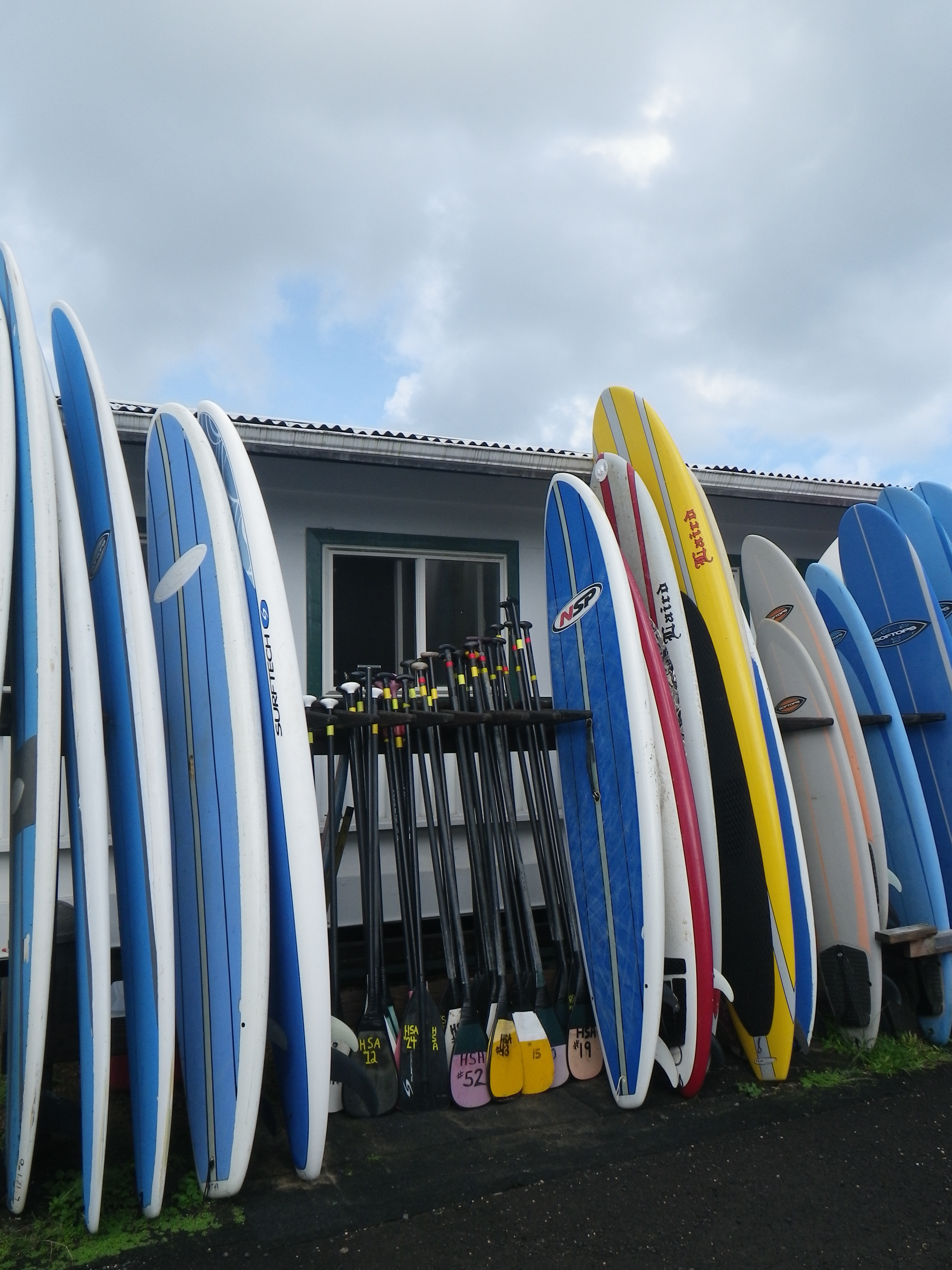 I made several phone calls from the mainland to try to arrange rentals in advance. Every call met with pretty much the same response: “Yeah, we have lots of SUPs for rent, come on down.” I was specifically asking about shorter surf SUPs, and was willing to pay a premium for 2 quality boards for a week rental. When we got there, most rental fleets were giant unwieldy logs with many dings.