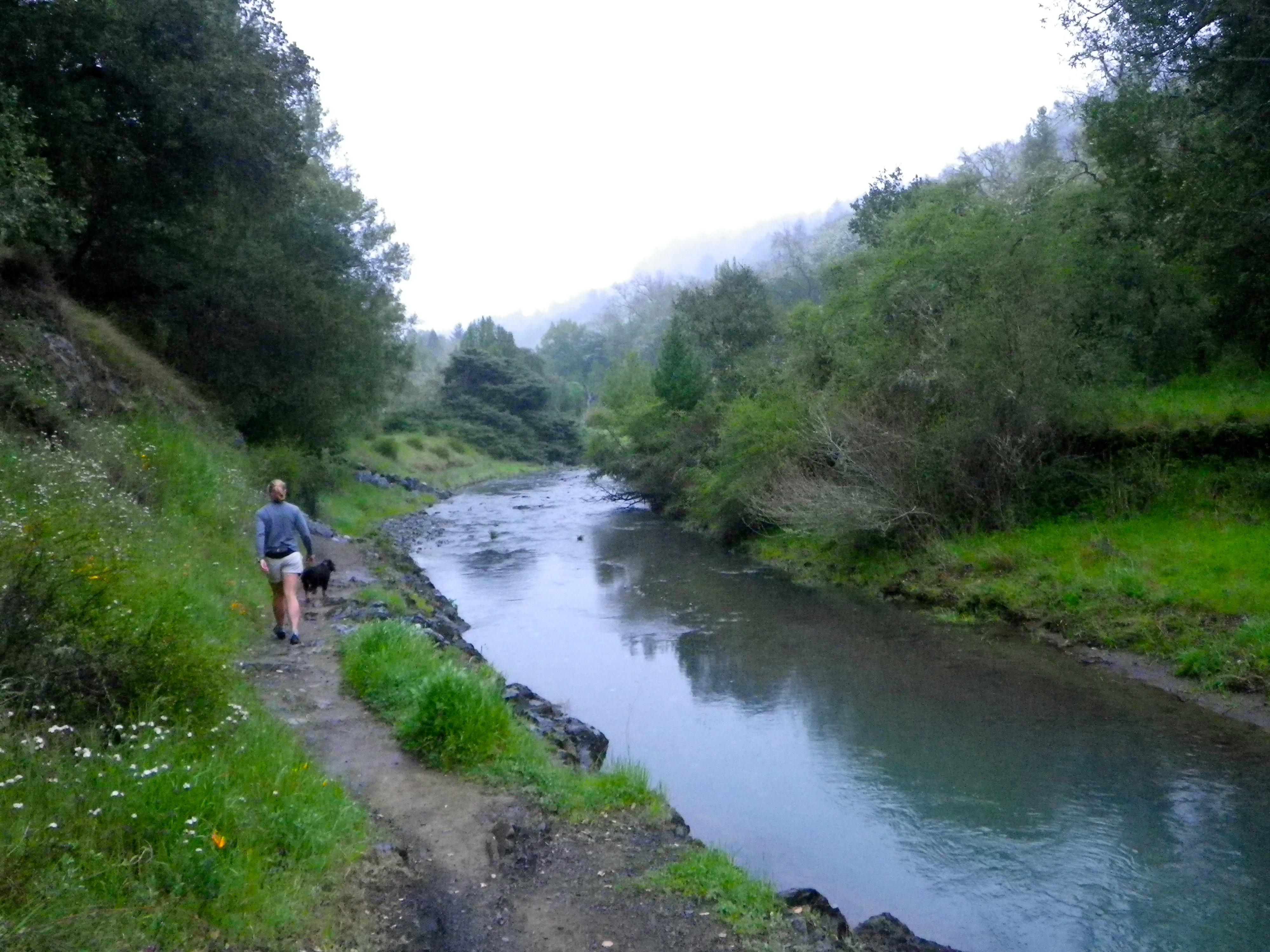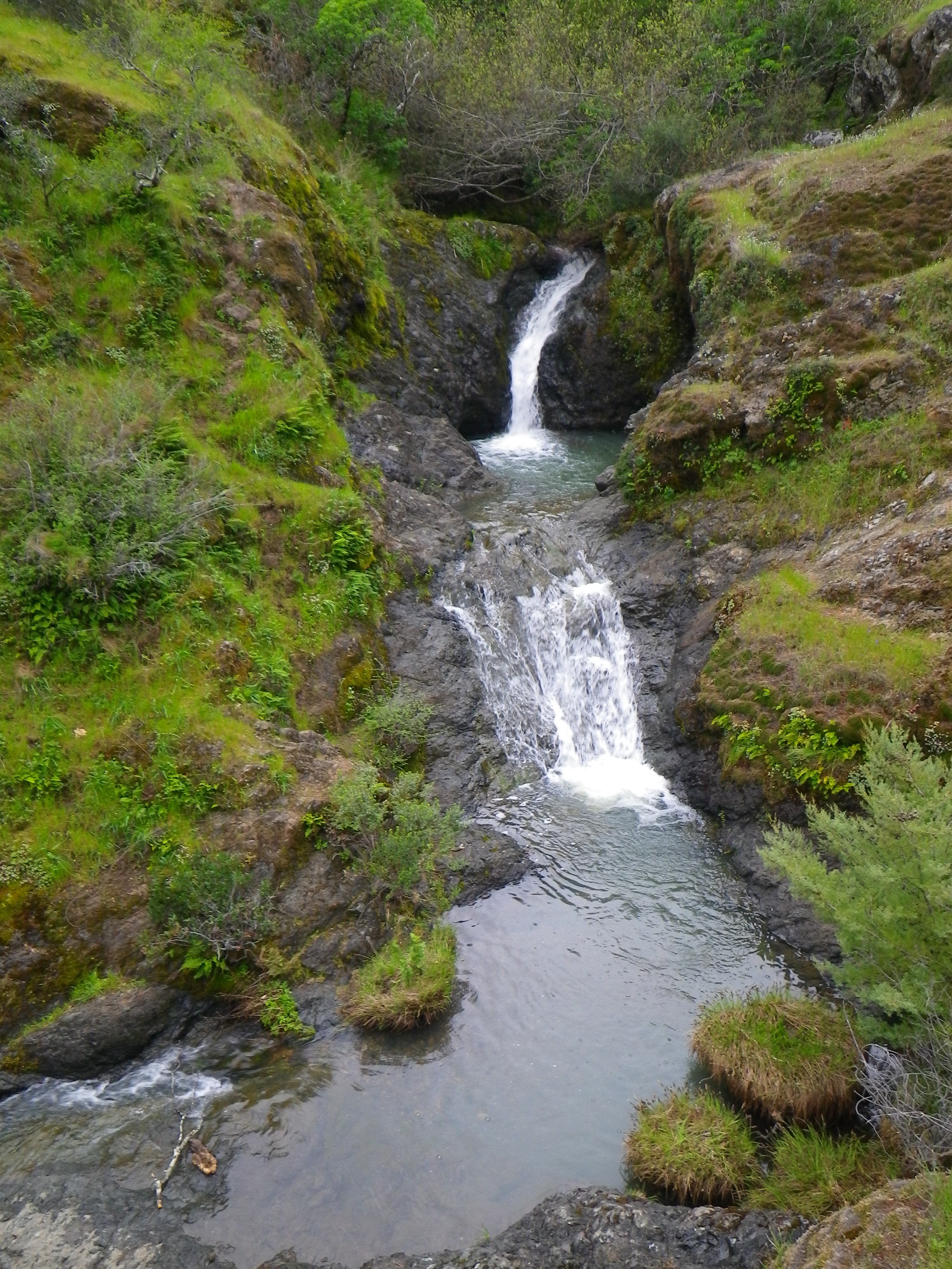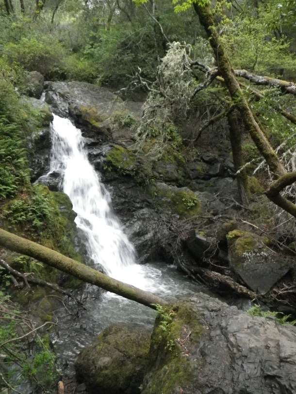 Each season has different qualities that we love. The Northern California coast has a distinct rainy season. In the spring, our golden hills turn green. Creeks are full, and seasonal waterfalls appear. From years of running, riding, and hiking, we’ve learned about many “off the beaten path” waterfalls. On this day, we went to visit one of our favorites.