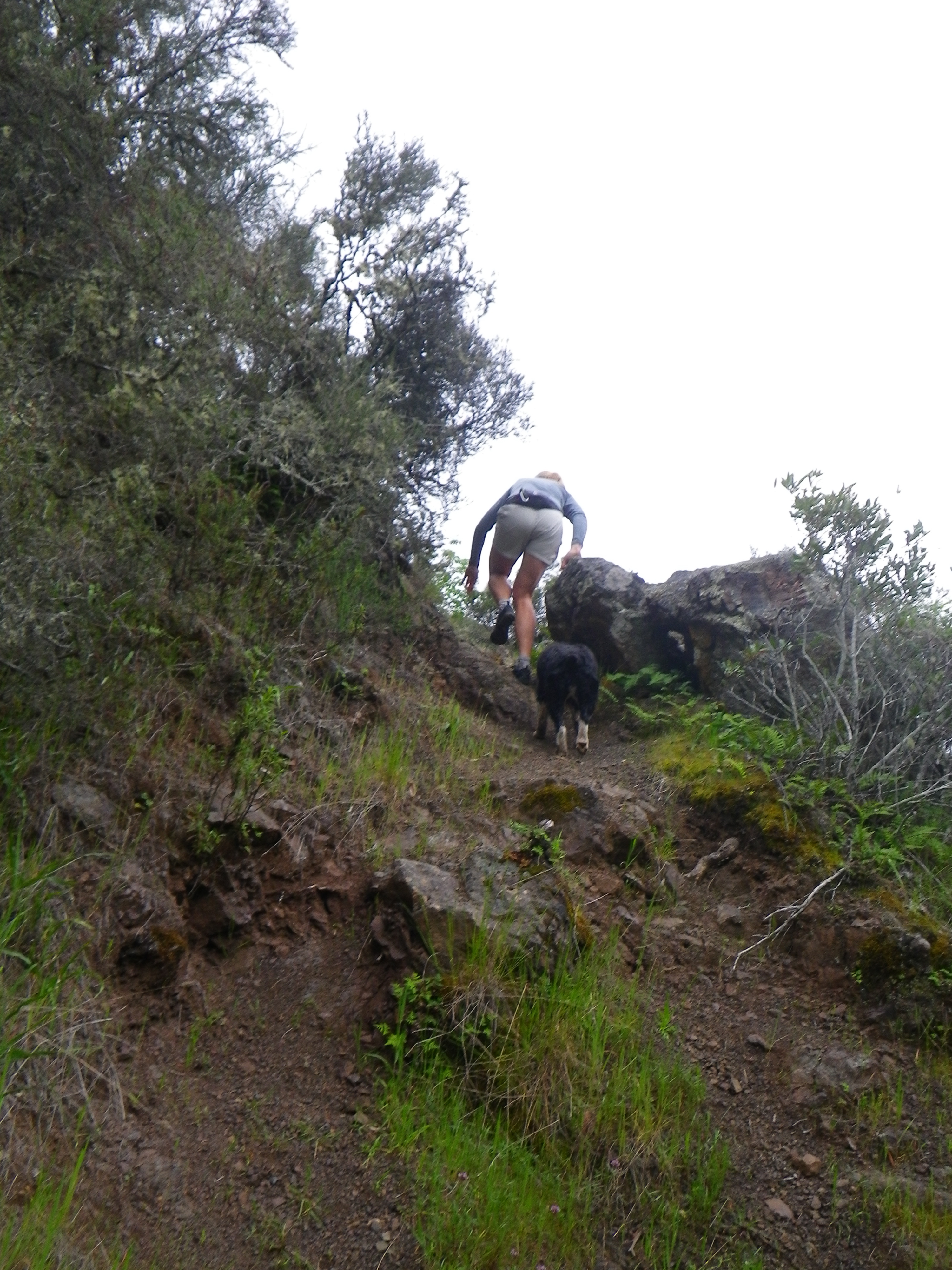 When writing a blog post, I usually let it sit overnight before making (at least) one last proofread. In reading over my own posts, it seems like I dumb down many of our adventures. I suppose that I could re-write the post to make it appear more extreme and dramatic. After all, it was nearly 5 miles of hiking in my minimalist Vibram Five Fingers (and H in her New Balance Minimus shoes) on obscure, rocky, steep trails lined with poison oak, with a light rain on and off, and getting back to the car at dark. And dude, I totally dropped my camera down a waterfall and had to go in after it! How extreme is that!