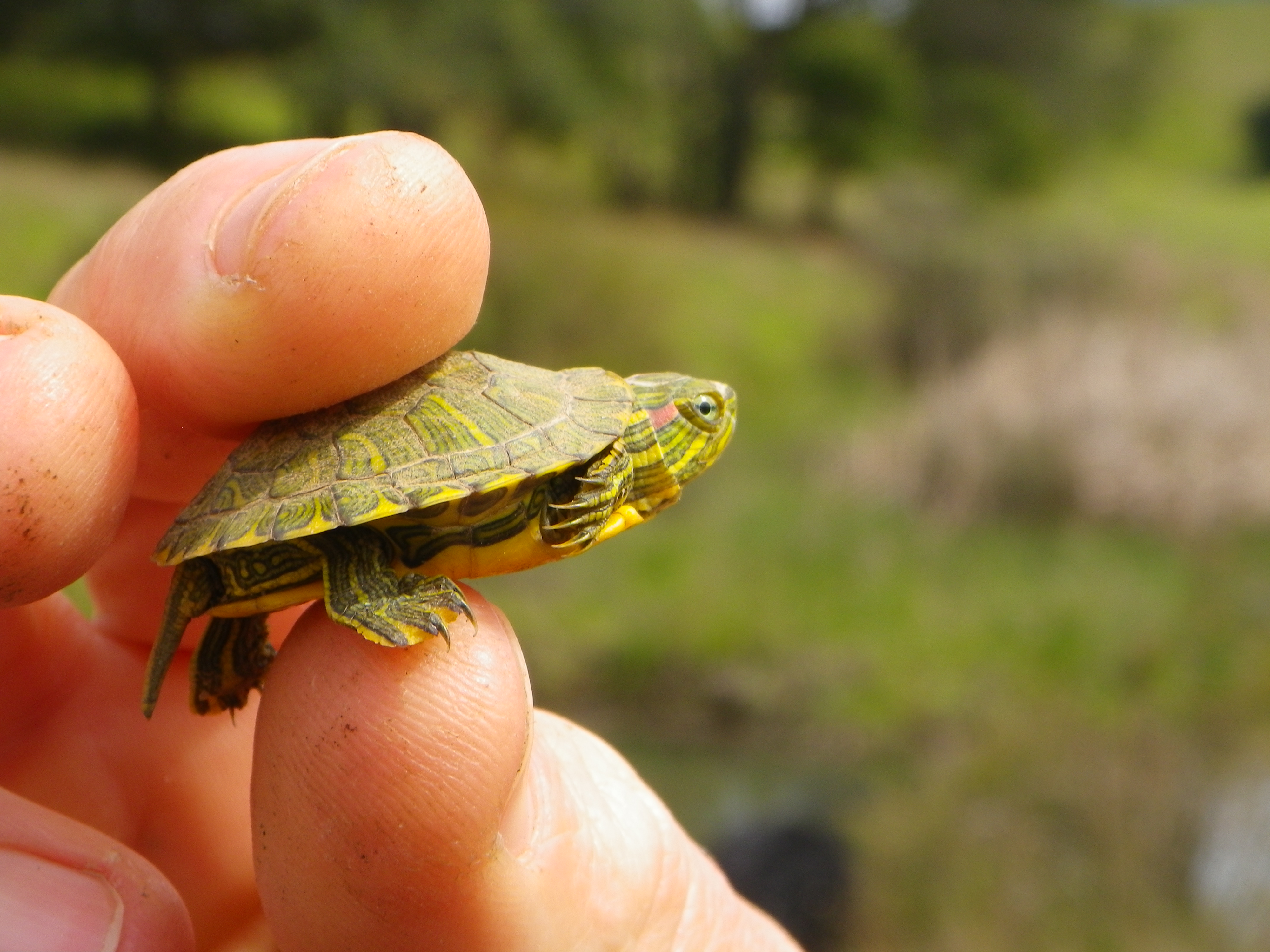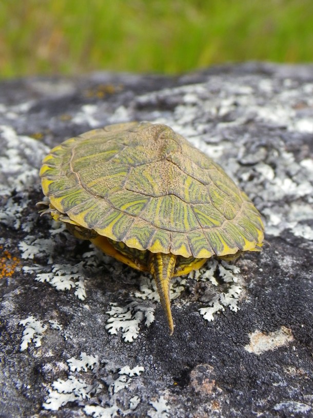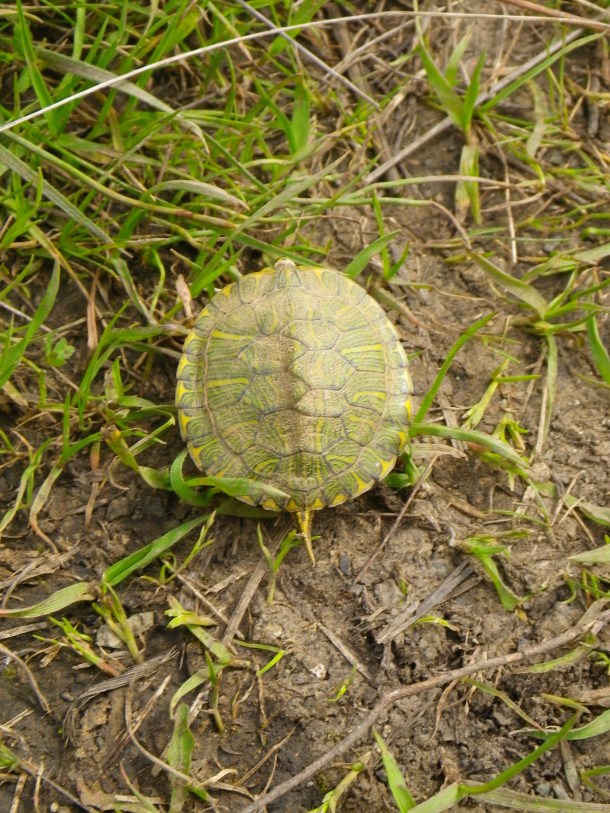 Please note– We do not condone taking wildlife from its natural habitat. Take only pictures, leave only footprints and tire tracks. We knew in advance that there was a problem at this lake with people dumping pet red eared slider turtles. We positively identified the turtle as a non-native before taking it home.