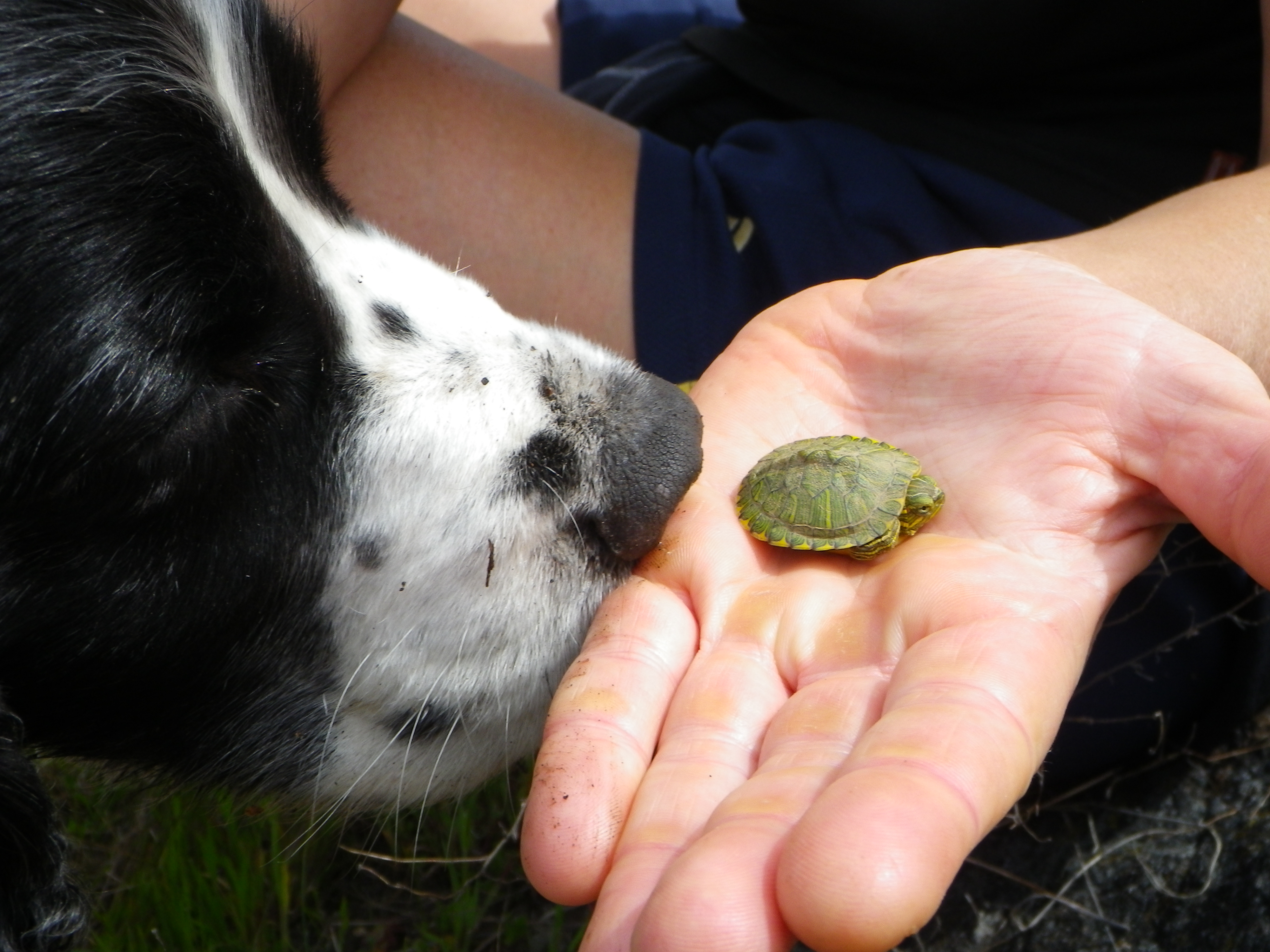 Daisy Trail Dog was really curious about the turtle and what the fuss was all about. She wanted to see too. Usually she is the center of attention.