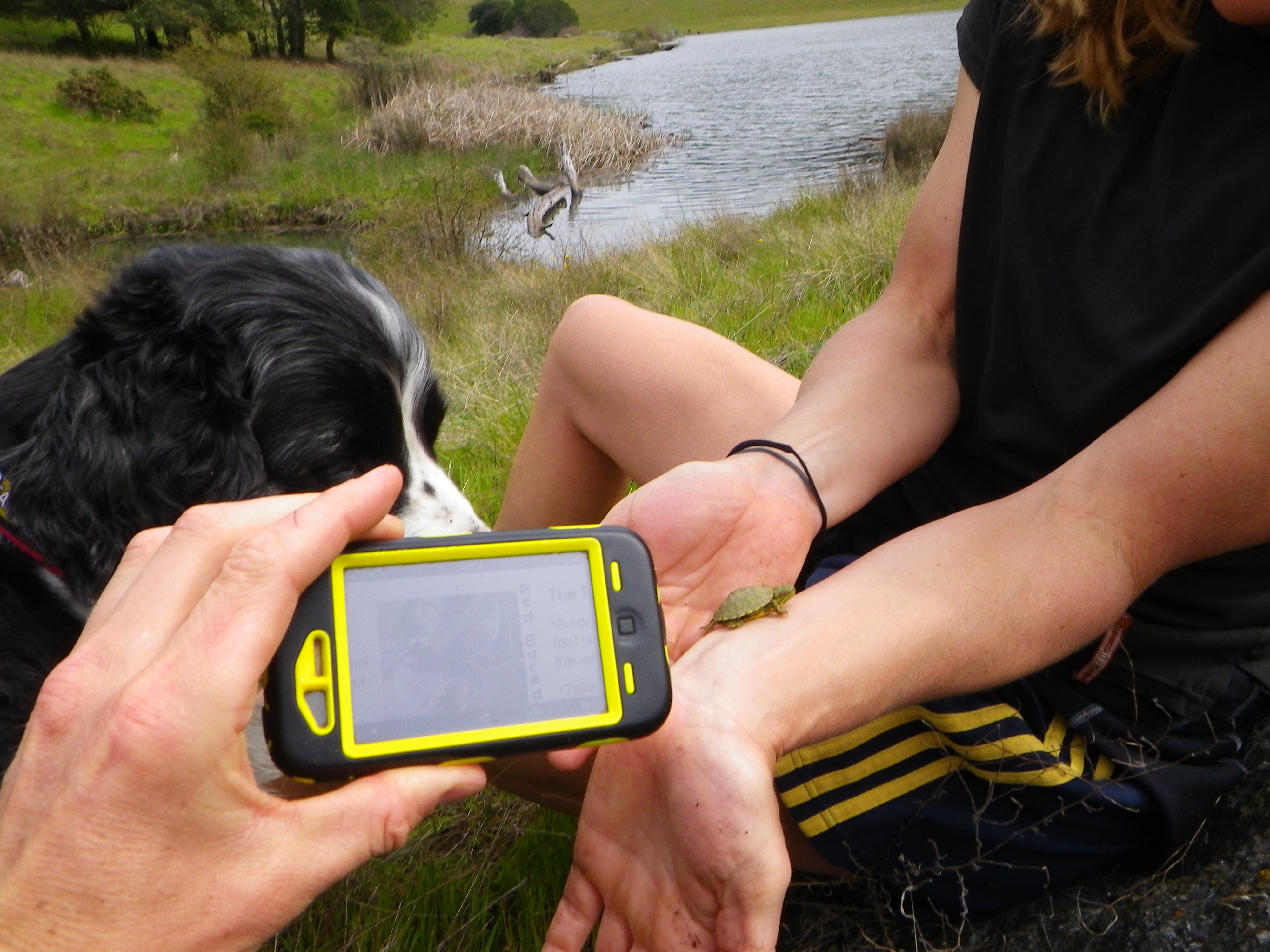 I remembered that I had my iPhone (a rarity while hiking) and 3G signal! I did a quick Google search for “non-native turtle Marin Municipal” and immediately get a poster about non-native turtles.