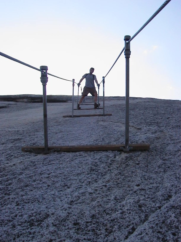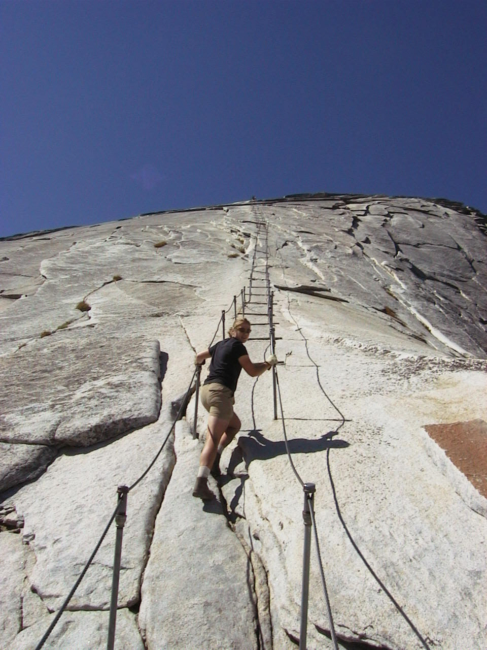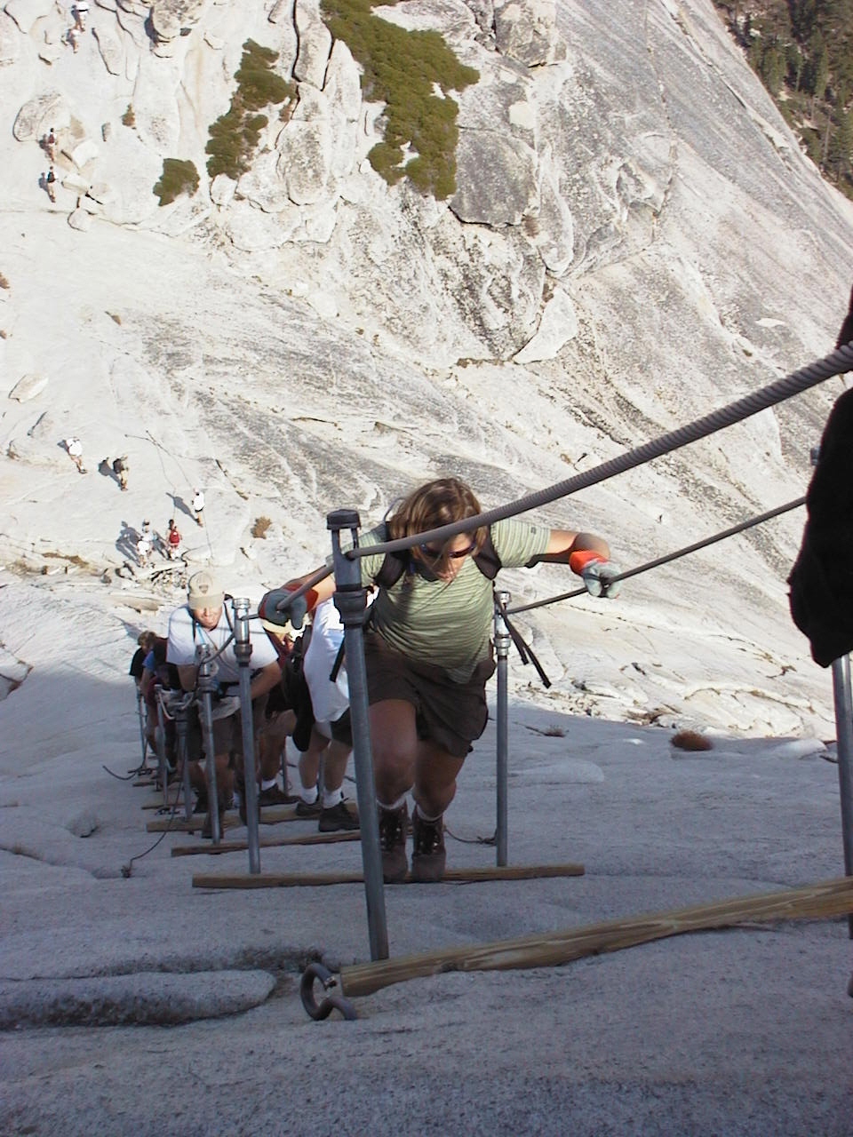 Oh, just found this one, from our first trip up Half Dome in 2000.  Yup, we had the cables all to ourselves.  Made for a quick and drama free trip up.