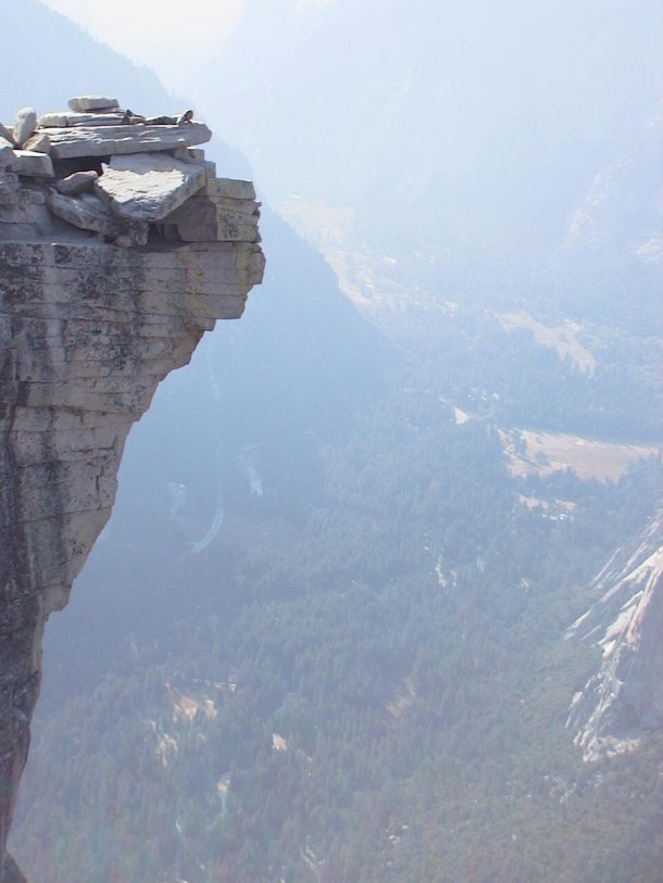 Girl, on Cliff. H peers over the edge to the Yosemite Valley floor below.