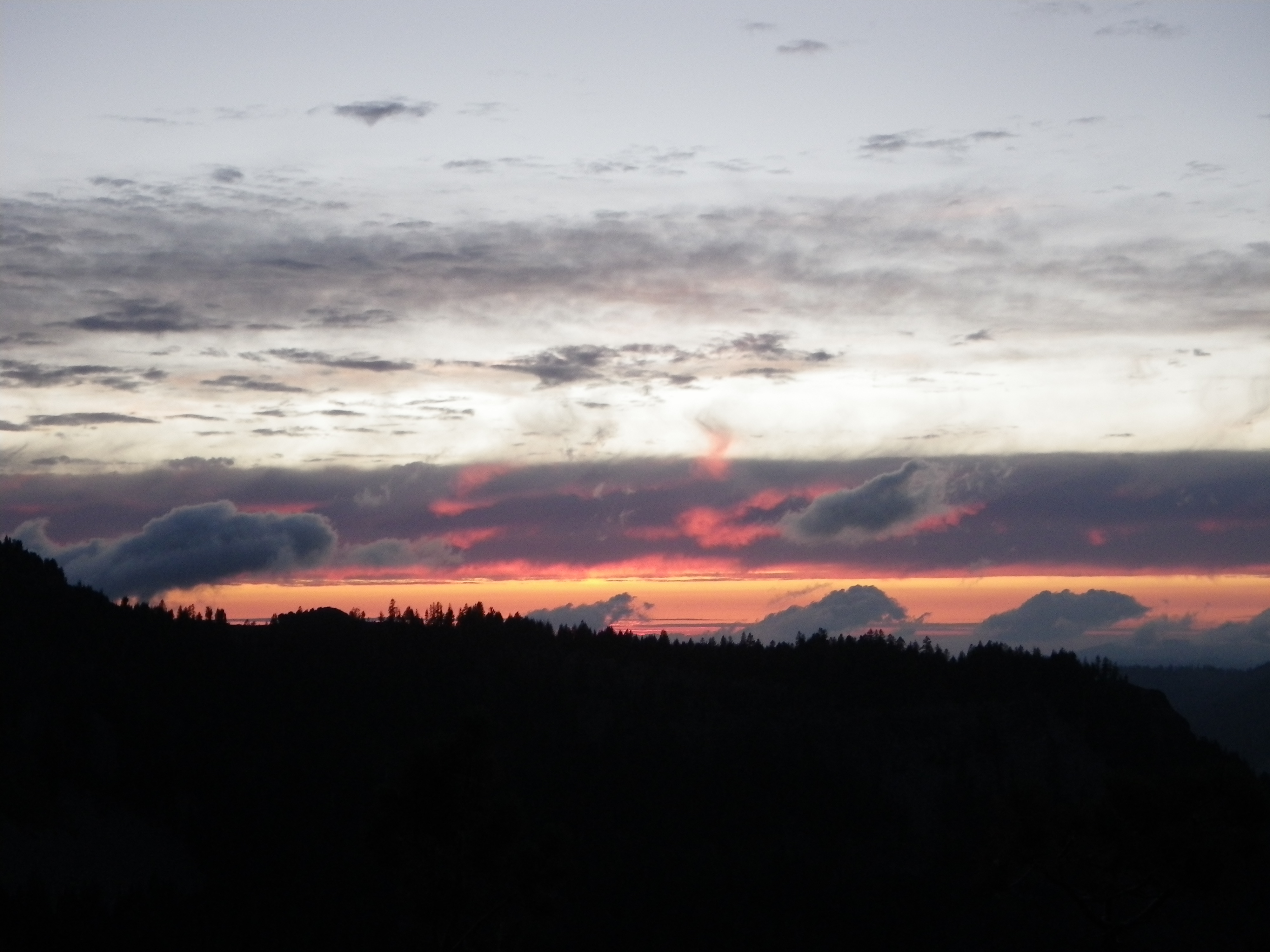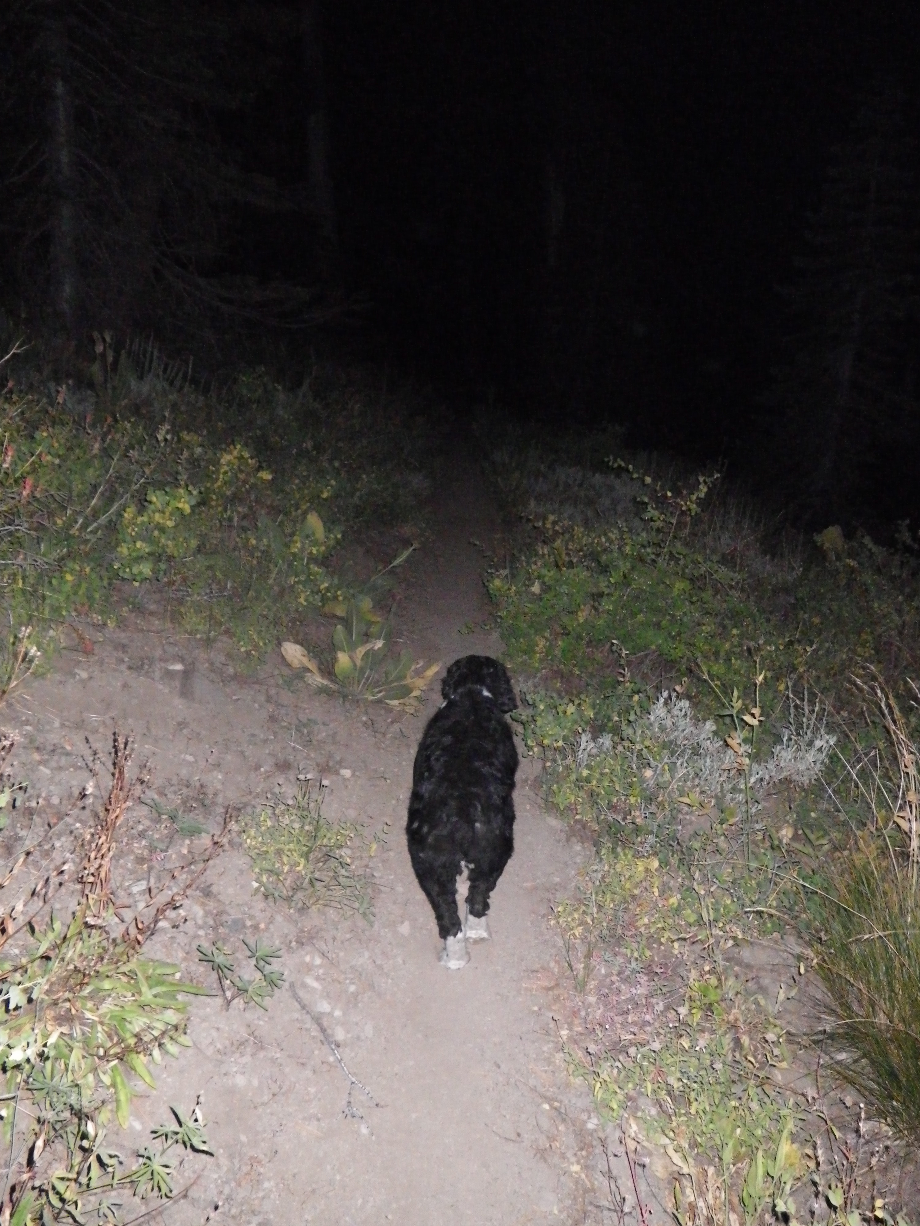 I snapped this sunset pic on the Pacific Crest Trail on the spine of a ridge above 8000′ elevation. It was just Daisy Trail Dog and I, and we had miles to go to get back to the car. We came in hours after the sun had set. What is beautiful by day, is eery at night in the halo of your headlamp. Your world turns from sweeping vistas to the little sphere illuminated by the glow of your headlight.