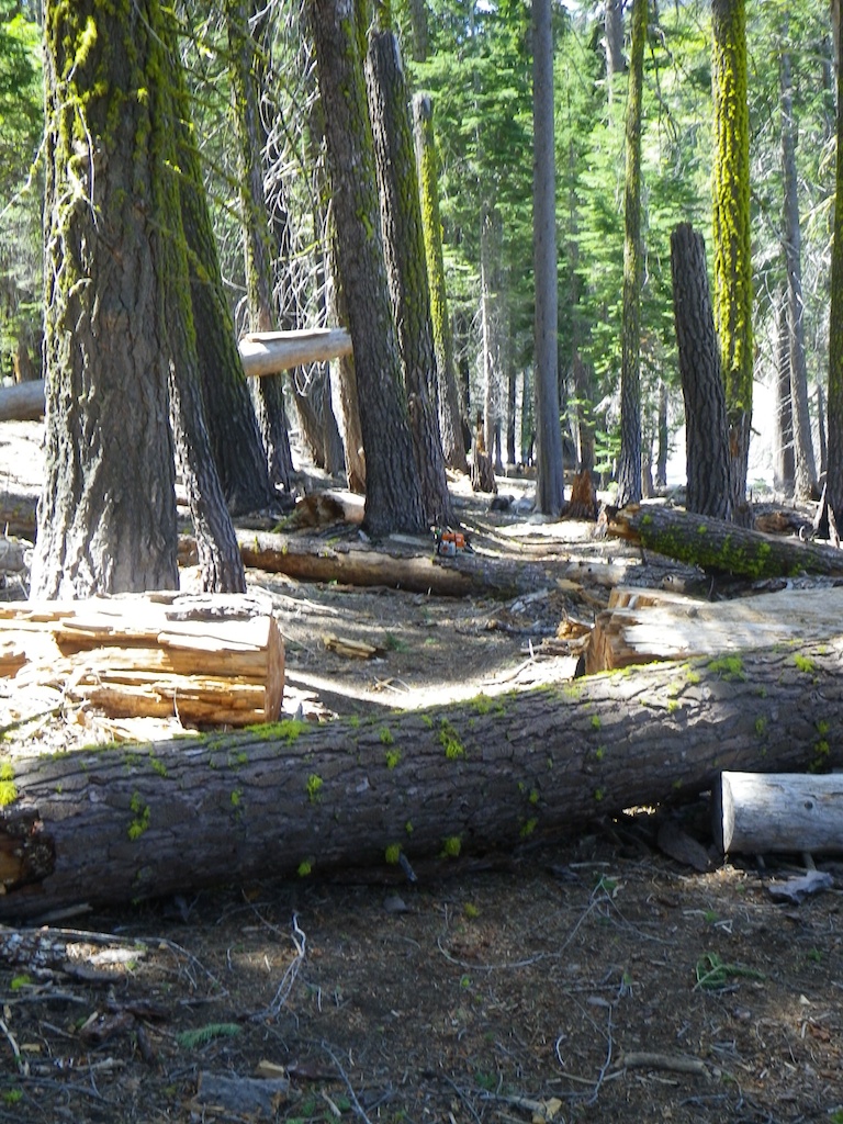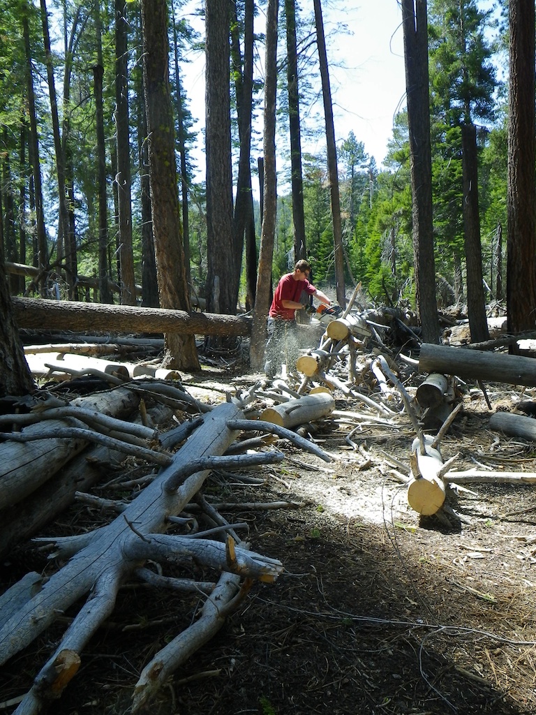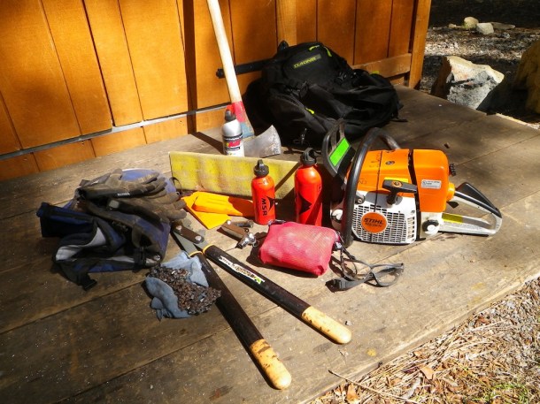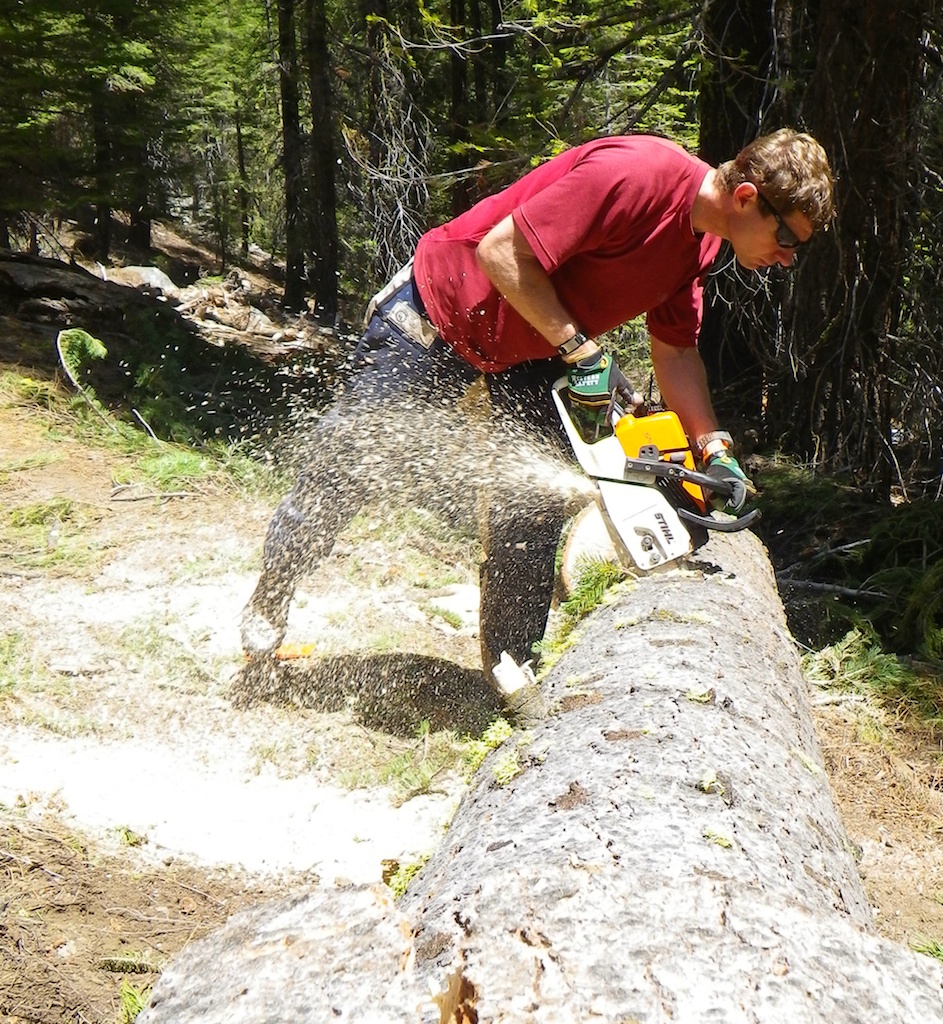 Important disclaimer-  Although I talk lightly about hiking out into the backcountry with a chainsaw, chainsaw work is not for everyone.  Chainsaws are the most dangerous power tool (average chainsaw injury= 160 stitches!) and should only be used by qualified people- especially miles from emergency services.  I have an unusual skill set (experienced sawyer with a passion for outdoor endurance sports).  As part of my commitment to community service, I got certified by the US Forest Service for backcountry chainsaw use.  Yes, I do have a “license to chainsaw.”  Performing unpermitted chainsaw work can get you into lots of trouble.  Be Smart, Be Safe.