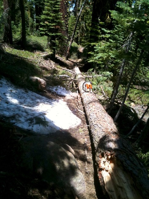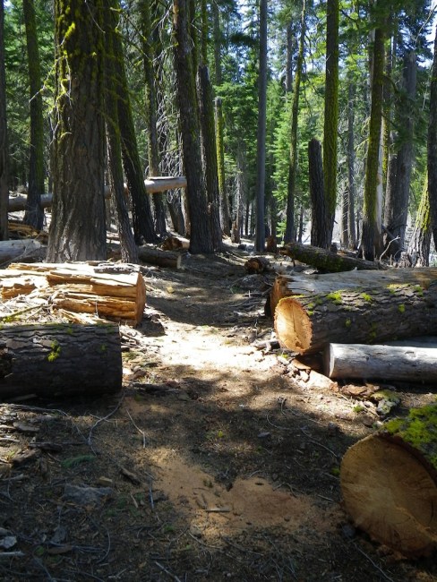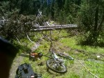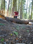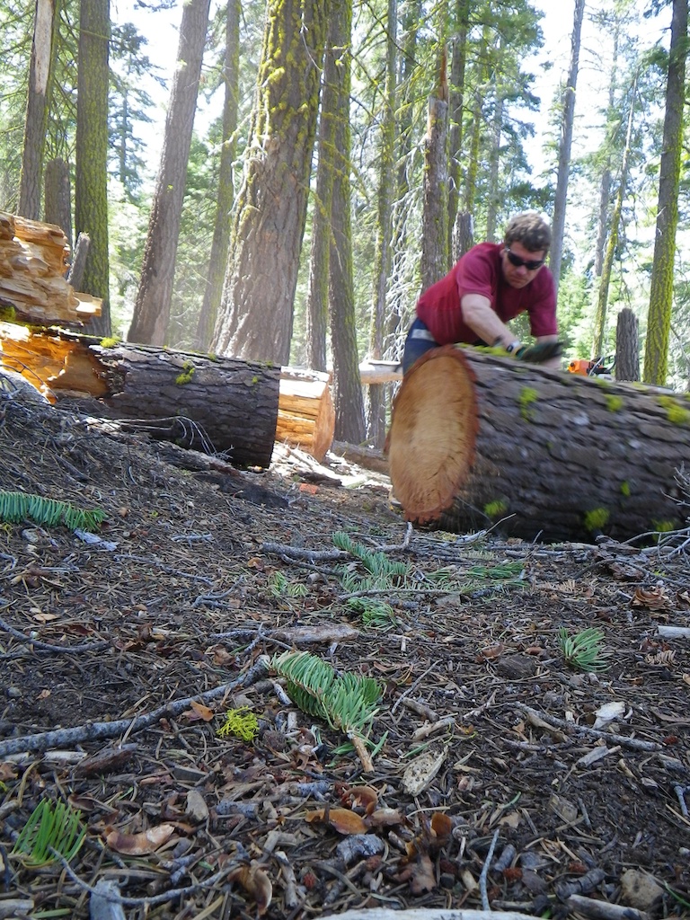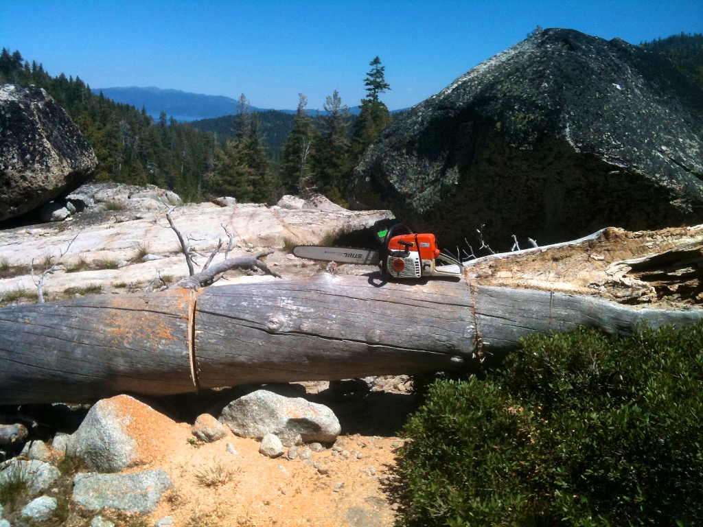 Each spring, when the snow melts in Tahoe, I head out on foot or on the mountain bike with chainsaw and pruners to clear all the fallen trees off the trails in my “neighborhood.”  I view this not as a chore, but an opportunity to get outside, do something good for the community, and keep the trails open for my own use.  Heavy snow and winter storms topple hundreds of trees across trails each year in the Tahoe Basin (and anywhere trails run through the forest).
