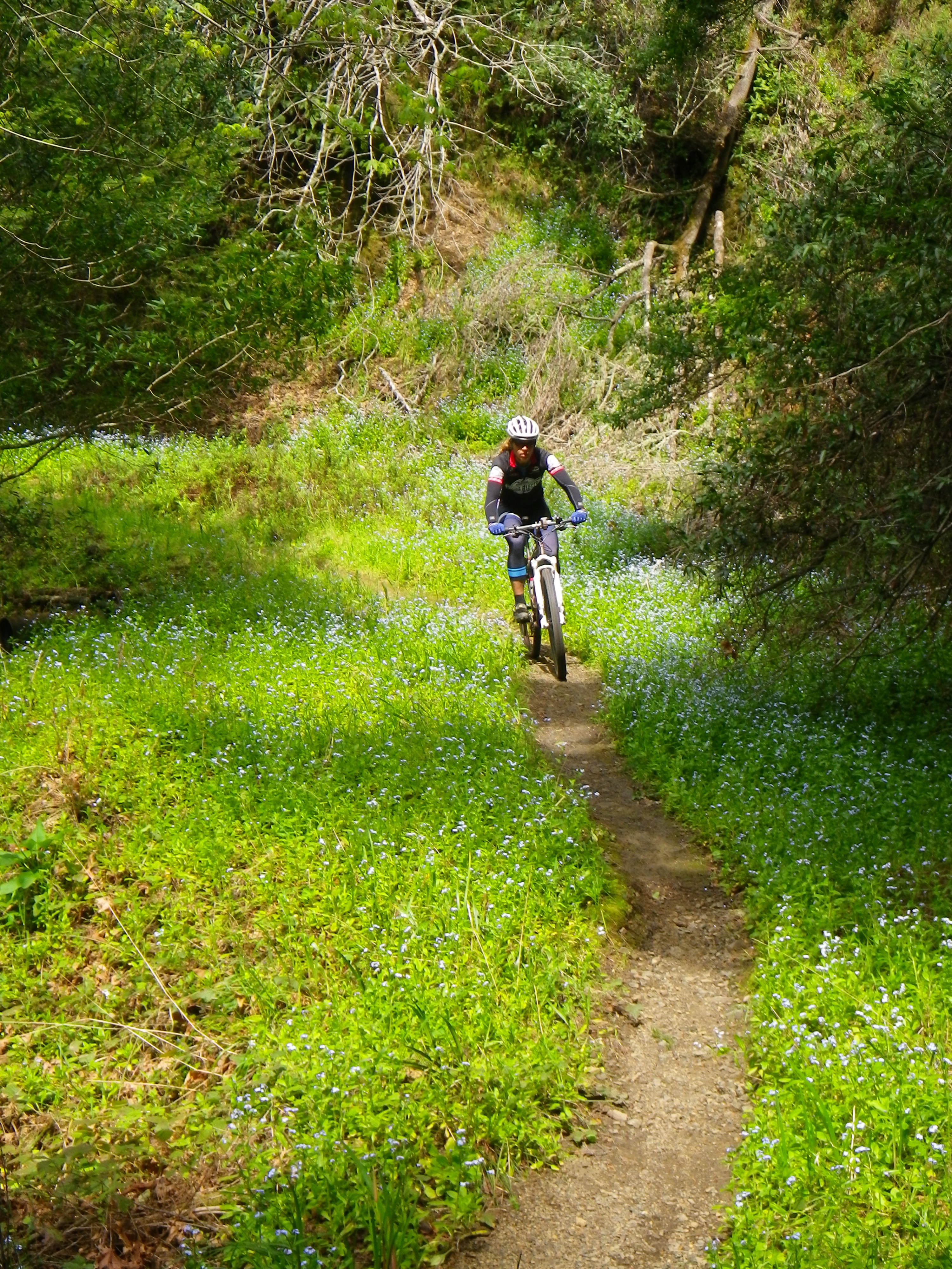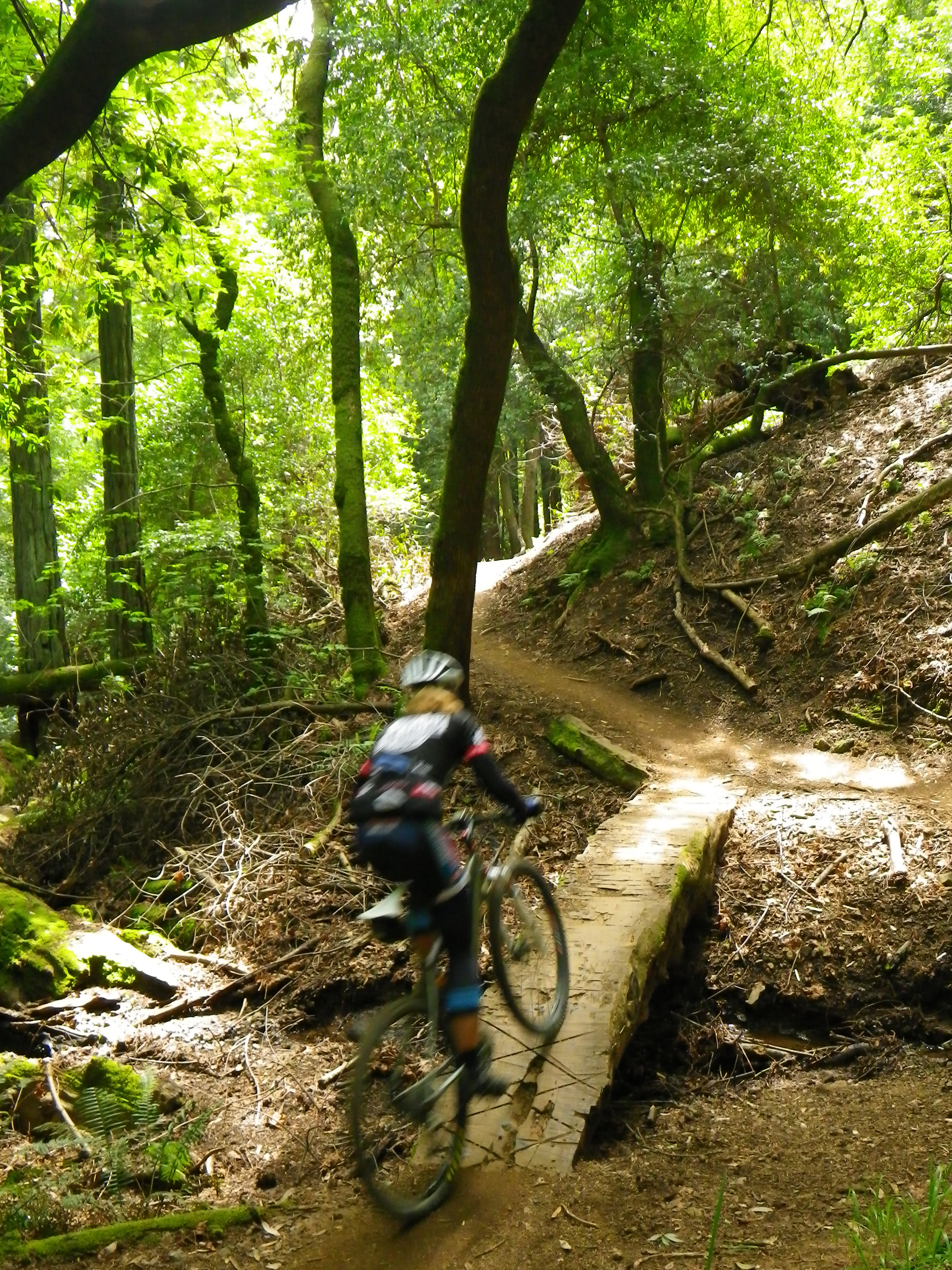 Did you say singletrack? Yow! She is great in tight spaces. I’m thinking that a lot of her quickness and agility is attributed to her custom fit to me. Never have I felt so centered on a bike before. Nor had I been able to comfortably get behind the saddle. This fit aids me to move the bike like I have never been able to before. Switchbacks that challenged me before are now made with ease. Tight turns, ditto. She flows!