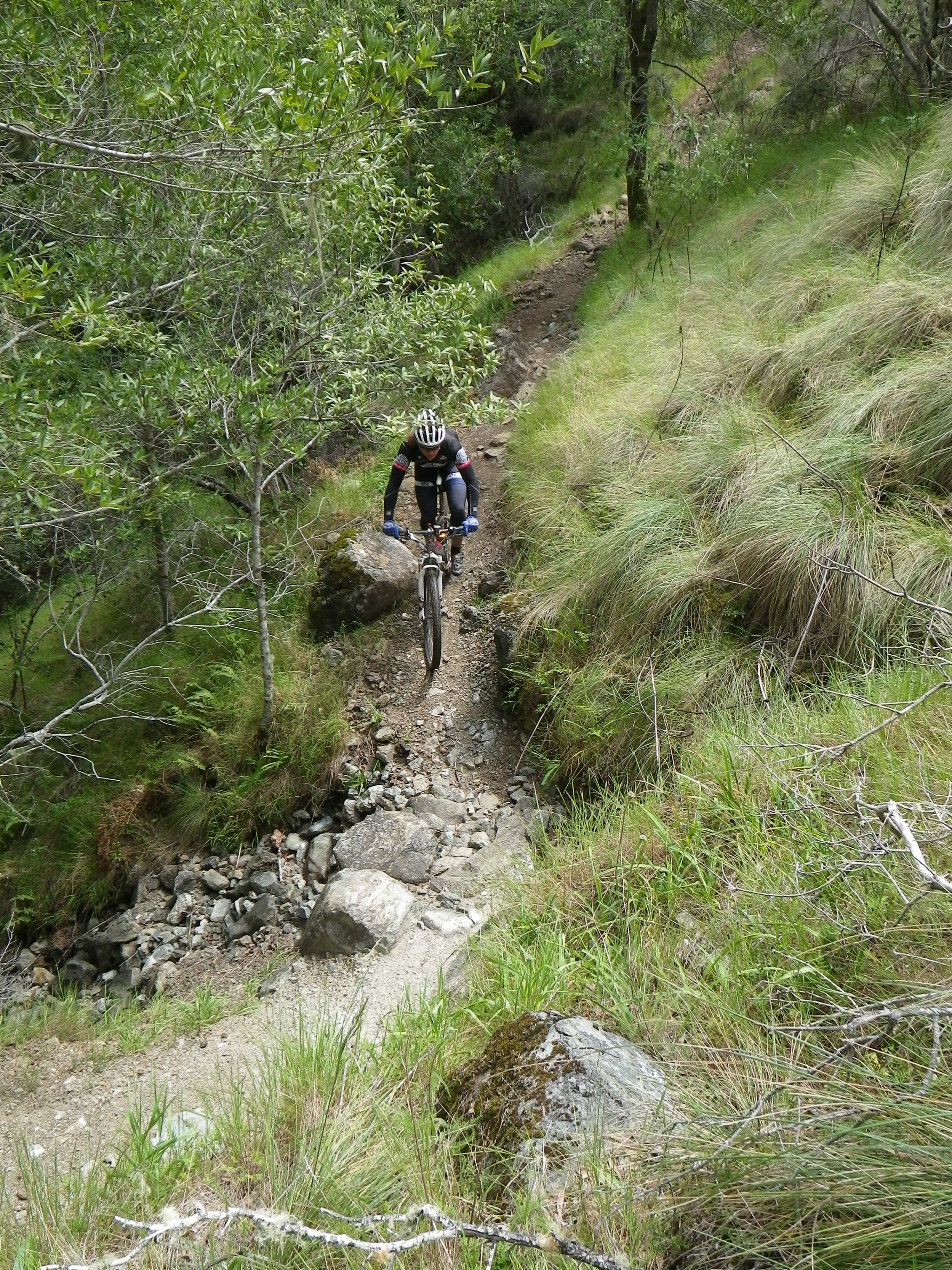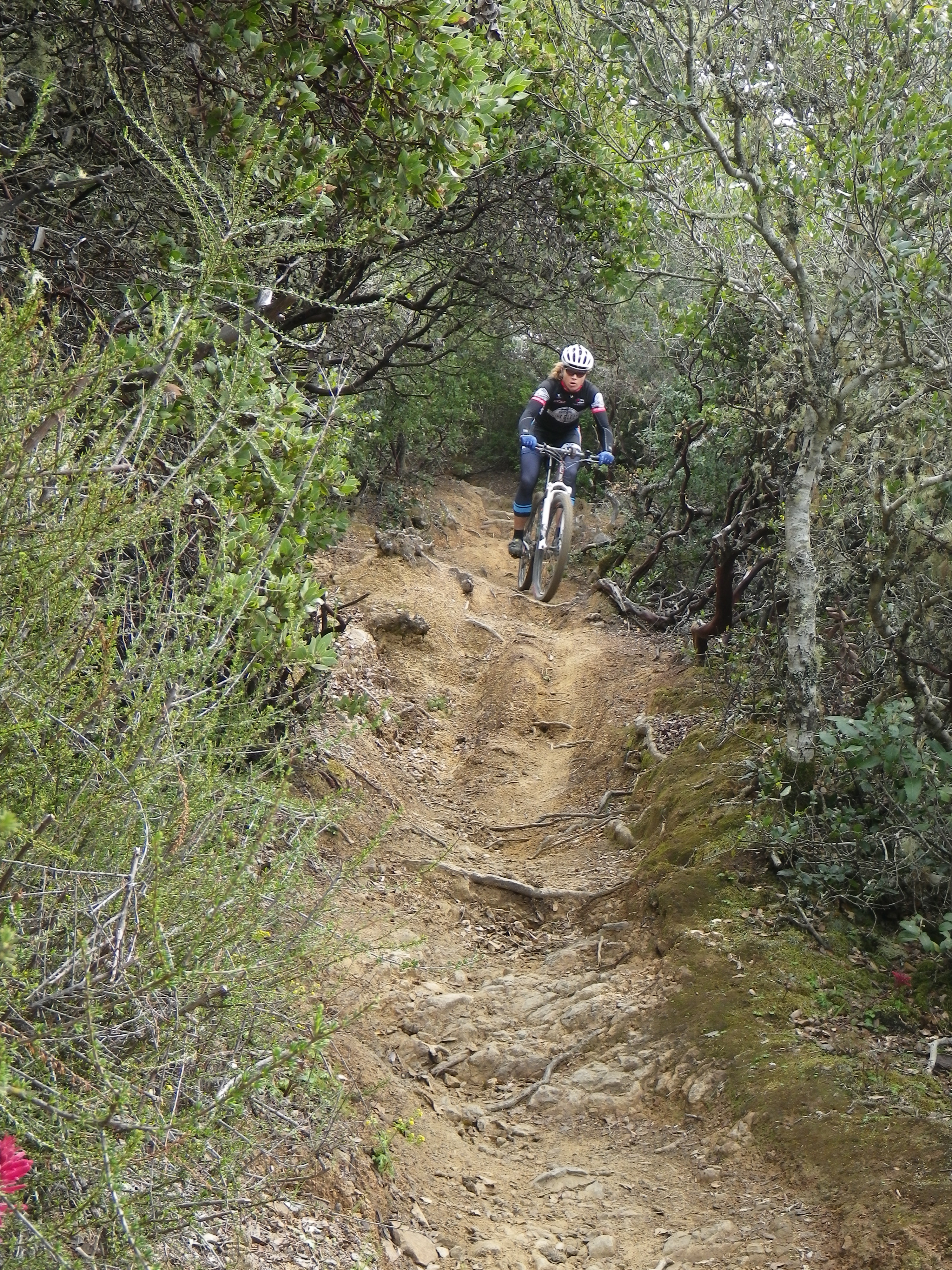 Who likes fire roads? Blech. But if you have to ride them, the 29er wheels get you over them fast. I don’t like fire road downhills, especially rutted, gravelly, baby head studded downhills. Here is where you want the full suspension, just point and go. With the hardtail you have to be a line picker to go fast, but I am working on that! So my downhill non-prowess is not to be blamed on the bike, she does it well for what she is. A smooth, stable, confidence inducing non-twitchy ride. She is more like a road bike on the fast fire roads, which is good for covering distance.