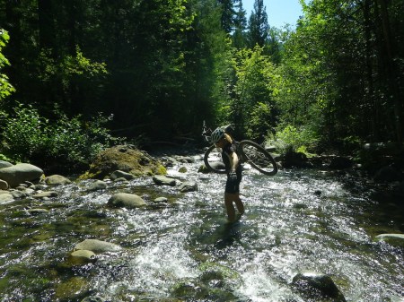 This is what happens when we didn’t read the sign that says, “Detour- Bridge Out.” Still fun, except for the wet socks hours later. Oh well, makes for a great adventure.