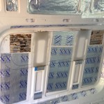 Back to the Coroplast templates. I used Coroplast sheets to make cut templates for the wall panels. Coroplast is great stuff for making templates. Nothing in a vehicle is straight, and Coroplast is easy to trim and test fit with a razor blade. It’s an investment at about $20/sheet, but definitely paid for itself with time saved for me.