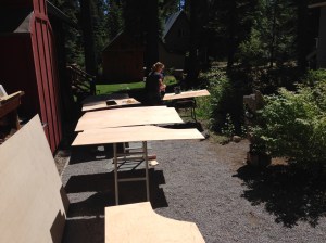I had cut all my wall panels at the same time using Coroplast templates, and sealed them with 3 coats of a water based clear polyurethane sealant. I choose water-based products wherever practical since I don’t want oil-based paints off-gassing in a small living space.