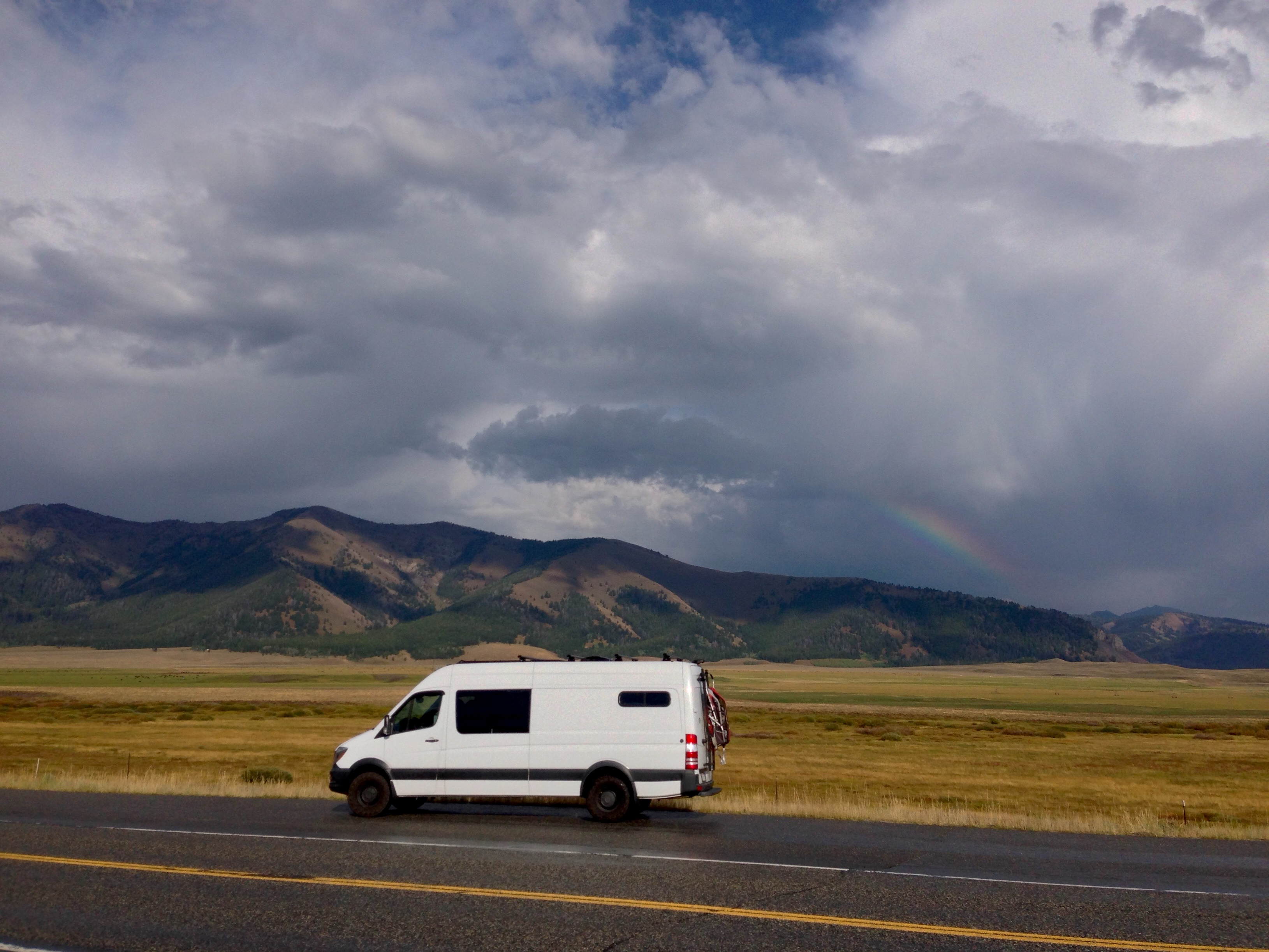 I’ve always liked the long skinny windows you often see in some of the boutique Outside, or RB components vans. Getting light and ventilation to the sleeping area is great. We can look outside from bed, and get fresh air. On warm nights we turn on the fan to 10-20% speed, open a rear window, and feel a refreshing breeze flowing in. Other benefits to the long skinny windows are that they are nearly 8 feet off the ground. I’m comfortable leaving them open when I’d be worried about leaving other windows open. We always travel with our Dog, Miss Daisy, and being able to run the roof fan on high with 4-5 windows cracked means a complete air change in the van about every minute. We can keep the van pretty cool for her.