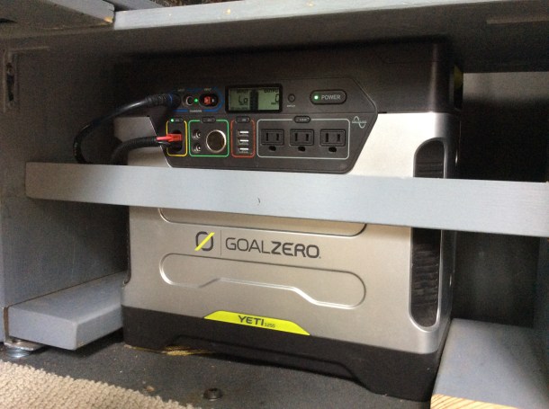 - Goal Zero Yeti 1250 provided power for fans, lighting, USB ports and the fridge