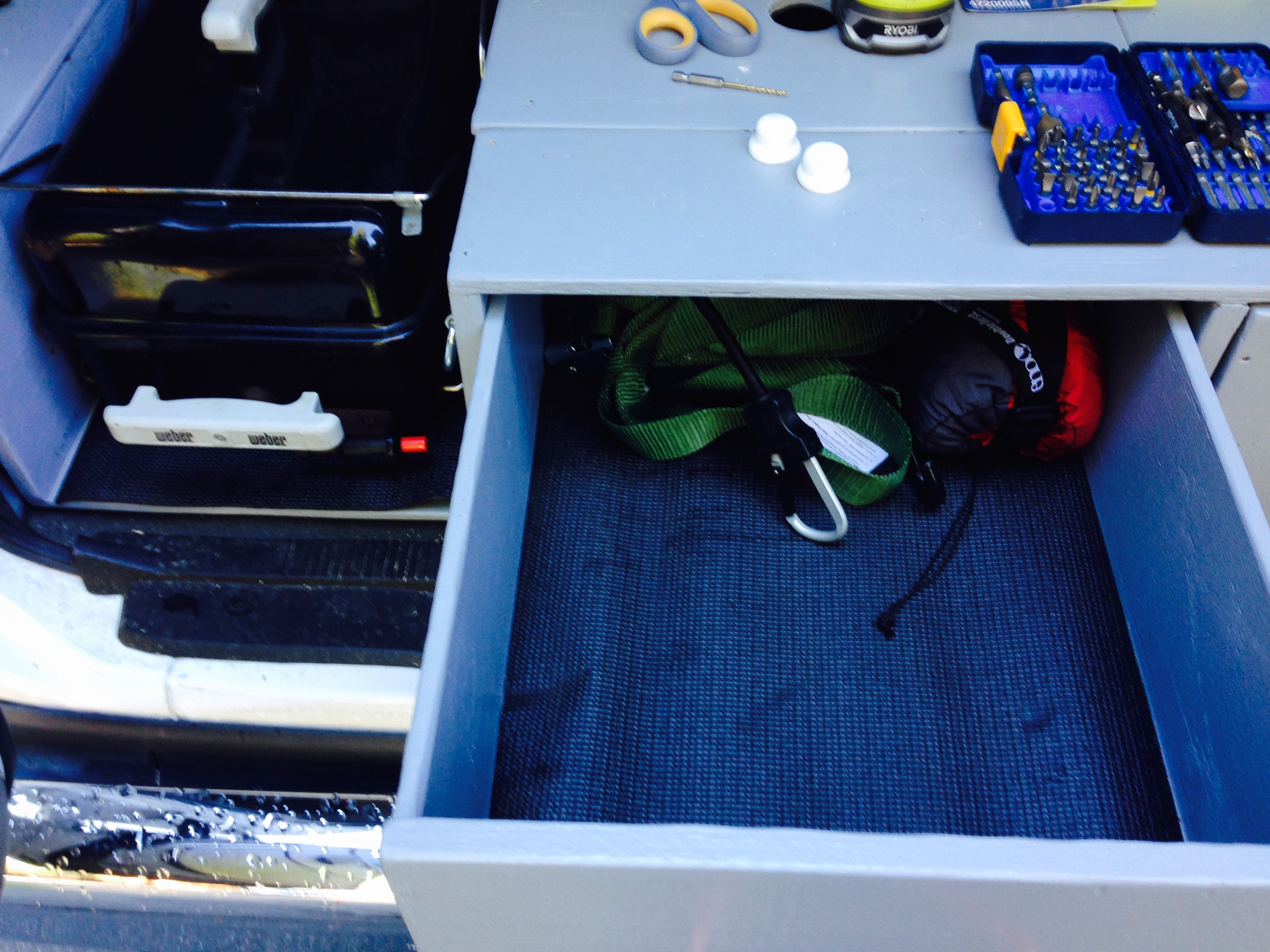 I lined the drawers with cheap yoga mat. No rattling allowed.