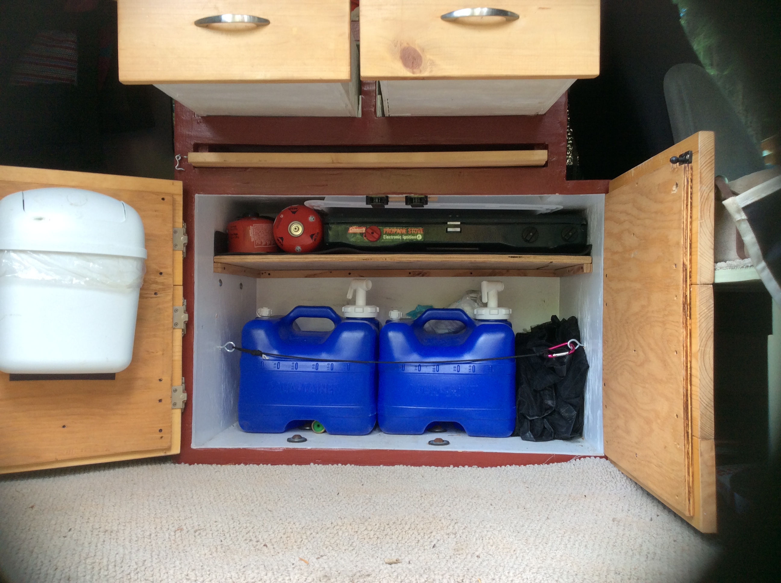 8 gallons of water, camp stove, fuel, etc.